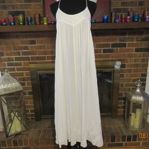 Effortless gorgeousness in this Free People maxi! Racer back with tie neck and bells to boot. Lovely embroidery details at bust and bottom hem. Unlined.