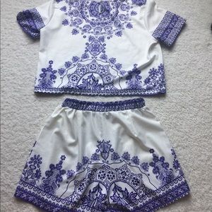 Shirt and shorts are both size medium, can be purchased individually also. Super cute!!!! From XENIA boutique