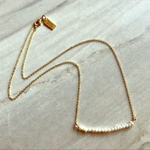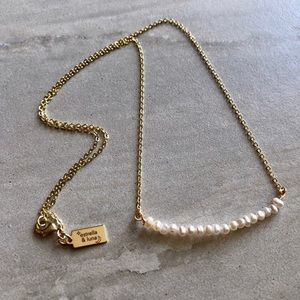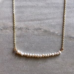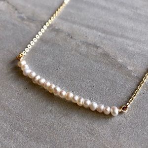 Dainty Natural Freshwater Pearl Bar Necklace featuring a 14K Gold plated brass Dainty 1.5mm 18” Chain with lobster claw closure.