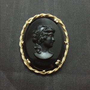 Beautiful Black Vintage Cameo Brooch set in Gold Metal. Great condition
