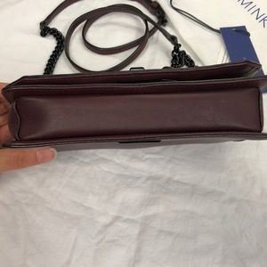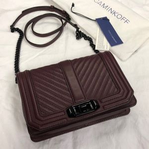 Rebecca Minkoff chevron quilted small Love crossbody in gorgeous dark cherry leather with onyx hardware. Looks brand new. Carried twice for about 2 hrs each time. A little too small for me. One small scuff pictured on front. No scratches on metal. Comes with dustbag.