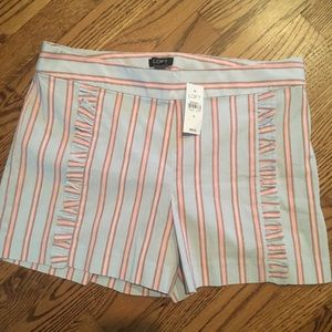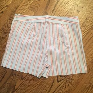 With precise stripes and sweet ruffle trim, these flattering shorts are a study in boy-meets-girl chic. Side zip.