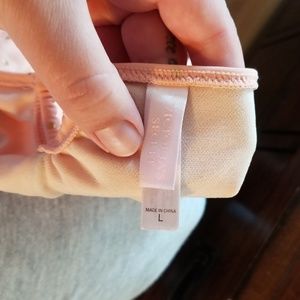 Victoria's Secret peach gold polka dot bikini bottom with gold heart on the back size L