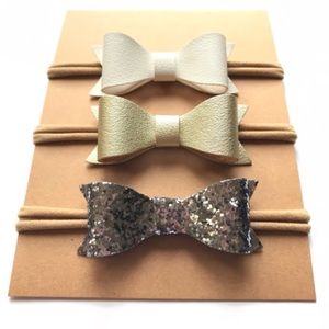 Available as alligator clips, ponytail holder or small nylon headbands for babies.