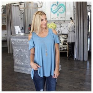 ✨LAST ONE✨Blue Cold Shoulder Ruffle Sleeve Tunic