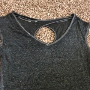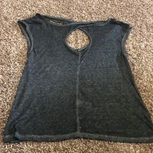 Only worn once. This is a super cute tank that you can wear with any cami or tank underneath to give it some color. It is sheer so you do need something underneath. It has a cross cross pattern with the sleeves so there’s an opening in the back. This is a lose flowing shit and not meant to be super tight fitting. Great condition!
