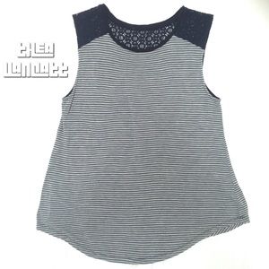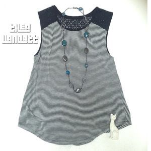Black Lace And Sassy Stripes Sleeveless Flowy Top!