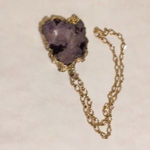 REDUCED FOR CLEARANCE Outstanding purple agate stone pendant with gold trim on beautiful gold plate chain. Fun for college, work, play, or an evening out on the town. Golds are very shiny and catch a lot of light. Royal colors Form of payment needed to confirm offer.😷😊