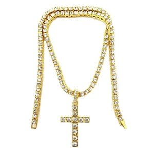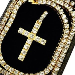 NEW Mens "Zeke" Iced Out Tennis Necklace with Iced Out Cross