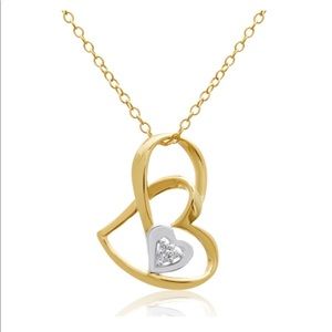14K Gold Over Sterling Silver Floating Heart Necklace with CZ Diamond Accents.