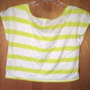 Beautiful white and lime striped top. Short sleeves. Lightweight. Excellent condition. No pulls or marks. Tags are easy to read. Thank you so much for shopping my closet. Enjoy your day!