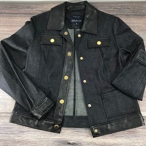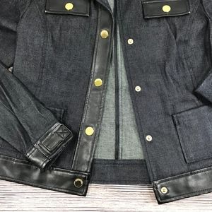 Jones New York Dark Wash Denim Leather Hem Jacket