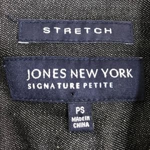 Jones New York Signature Petite Dark Wash Denim Leather Hem Jacket