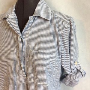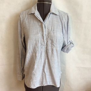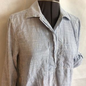 Gap Popover Shirt XS Blue White Stripe Top Tab Slv