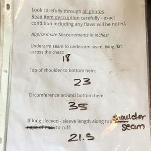 See photo for measurements. This item is pre-owned with mild signs of wear, mild wash wear from typical use.