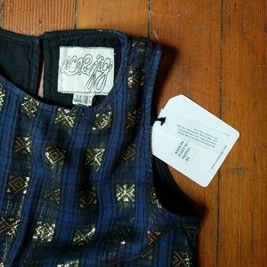 Double cloth but not reversible. Recommend hips 37 or less for this style. So soft. Tags attached. Gorgeous and perfect for fall weather! Strikes that balance between casual and festive with the gold accents on a subtle plaid background. Super soft on the inside because of the double cloth. Absolutely adorable, just a bit snug on me.
