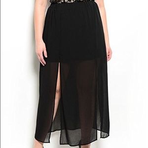 Plus size semi-sheer maxi skirt by the brand Pure Energy for Target. This skirt is so fun! Black, flowing, floor-length skirt with side slits will instantly up the ante on your style game.