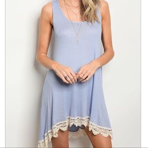 LAST Pale Blue Waffle Knit Lace Hem Dress