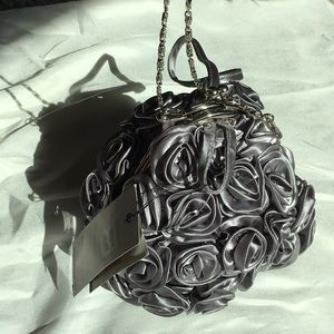 Adorably delicate ball shaped clutch NWT. Gorgeous rose detailing.