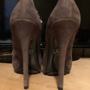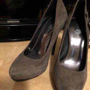 Rock & Republic Celina pumps. Pump with an edge! This shoe is super comfortable because of the hidden platform. Heel height is approx 4” with a platform of approx 1” . Beautiful gray suede. See pictures for details in shoe. Kept in very good condition. Signs of wear show on the sole. The rest of shoe is in good condition