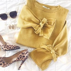 Mustard Tie Sleeve Sweater