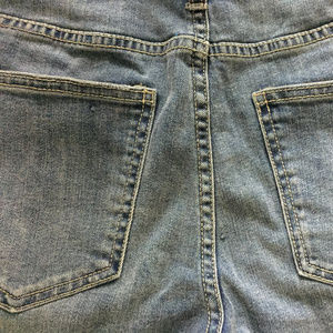 These are a pretty, lighter wash, grayish-blue.They are ankle length and look great rolled up. Super-soft and comfortable without the jingle jangle of buckles. Easy slim fit but can be a tight skinny fit depending on your size.Side zip. Also has stretch. Areas of distress (see pics). 2 nubs in fabric (see pic of back pockets- looks like nature of fabric). Brand new with tags. Great holiday gift!
