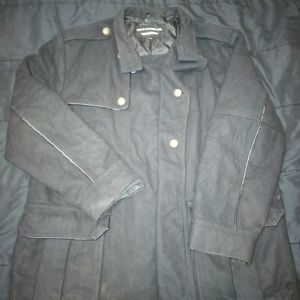 High quality wool blend Steve Madden pea coat. Grab this quickly before fall and winter arrive. It has two missing buttons but functions perfectly well without them. Dry clean only, we are a smoke free home but I cannot attest to it's previous owner's status. Only selling now because I got a new winter coat recently. Just want to see this go to somebody that will appreciate it.