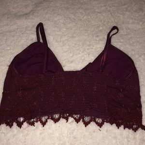 Free people, bralette, fringe around the bottom, spaghetti strap, eyelet lace, magenta color, still in great condition