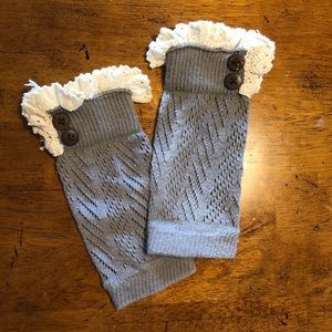 Super cute knit boot cuffs from Altar’d State. The top is lined with lace. They are grey in color with cream colored lace and brown buttons. The cuffs are stretchy enough to be worn on any leg. They can be worn under any boots. For a warm weather look, wear them over bare legs with a sundress and boots or wear them over leggings or jeans during colder weather. They are in perfect condition with no defects!