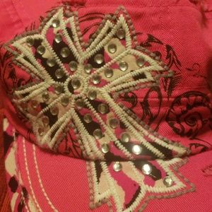 Original kbethos rhinestone cross har. Hot pink with elastic back.
