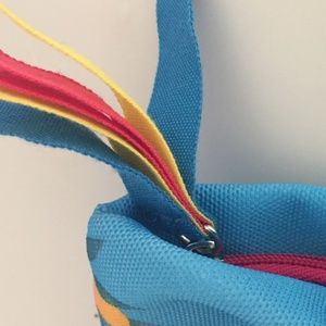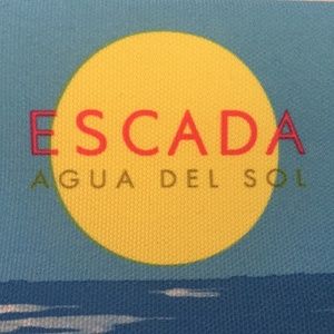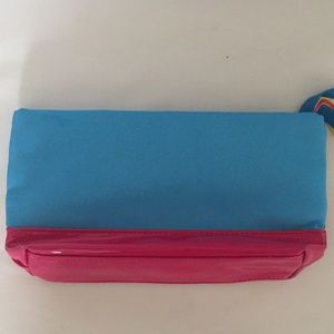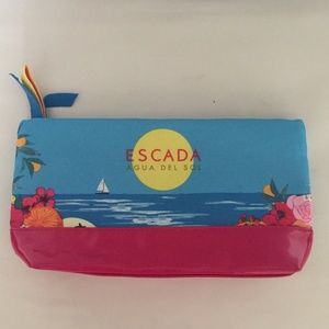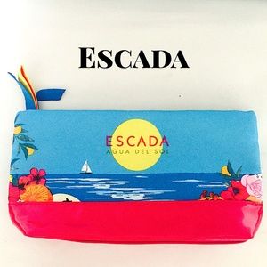 The perfect make-up bag or clutch for Vacation or Cruise. Fun and Beachy! NEVER USED ESCADA Agua Del Sol Parfums Cosmetic Tote. Small Hand bag. Blue & Pink. 10 x 5. Travel Make-Up Bag.