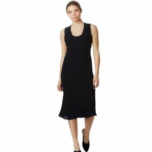 Thin slip dress, scoop neck with raw edges at neck and sleeveless openings, lightly lined.