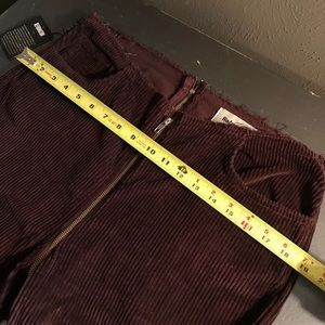 Measurements are inseam: 27 1/2'', front Rise: 10 1/2'', and leg opening: 15''