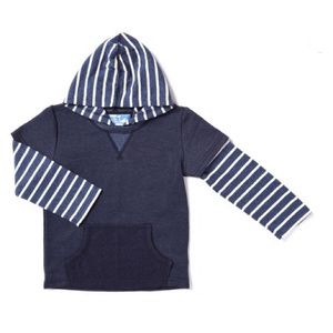 Have Your Little Man Comfy And Cool In Kapital K'S 2-Fer Hooded Tee! Baby French Terry With Contrast Stripe Thermal Sleeves And Hood. With Front Kangaroo, This Is The Go-To Hooded Tee Of The Season!