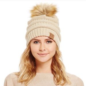 Kalli Collection Faux Fur Pom Pom Beanie