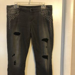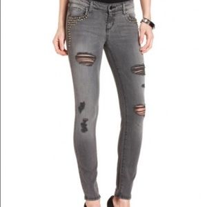 Guess skinny jeans- style: Kate destroyed denim with studs. Super comfy, size 29 but they run a little larger