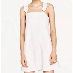 NWT Zara Off White Faux Leather Ruffle Strap Dress