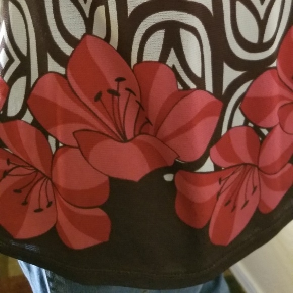 Super cute blouse with pleats.Has beautiful floral print at the bottom. Is fully lined.Awesome pre owned condition! Measurements are 17inches armpit to armpit and the length is 25.5 inches from shoulder to bottom.Smoke free home.