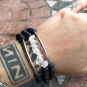 Crystal quartz bracelets . Genuine crystal quartz chips & black lava rock beads