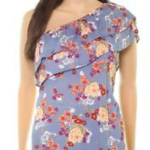 This is a Socialite blue floral ruffle one shoulder top. So cute! It retails for $45.