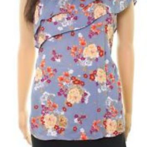 Socialite Floral One Shoulder Ruffle Blouse Top