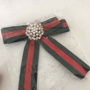 Red and green stripe brooches tie pin denim
