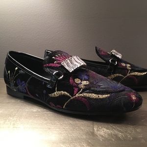 Giuseppe Zanotti Magdalena Embroidered Loafers NEW In BOX Black Purple 8.5 38.5