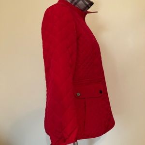 This jacket is lightweight and extremely stylish. Patterned under the collar and sleeves. 100% polyester. Machine washable new with tags