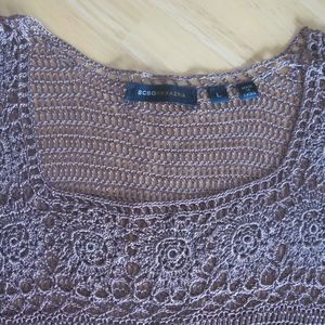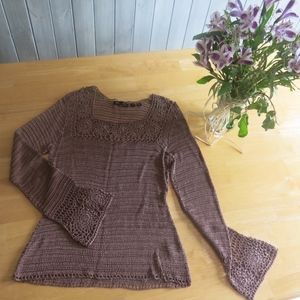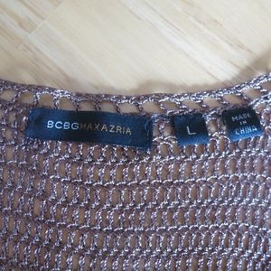 Lovely crochet BCBG MaxAzria top. Goldish-brown. Beauitful patterns. Two small pulled threads, as pictured.