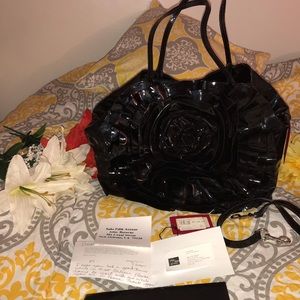 RARE!!! - NWT VALENTINO Black Rose Patent leather Tote Made in Italy🇮🇹 large & spacious!