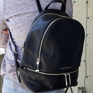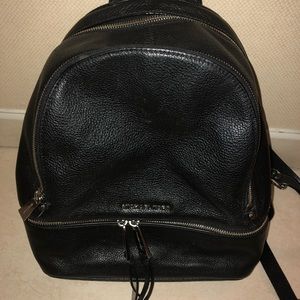 Medium Michael Kors Backpack. Black Leather with silver zipper. Used