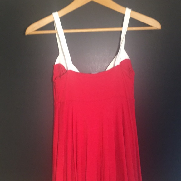 Women’s preowned Moda International red and white summer dress, Christmas, Valentines Day dress size XS. white is starting to fade. No holes, tears or stains. Dress was hardly worn and found in the back of the closet. Has a braw built in, but it is not padded.