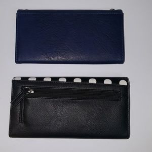 2. Black white polka dots pink lining inside. Credit card slots and change pocket.