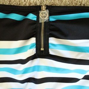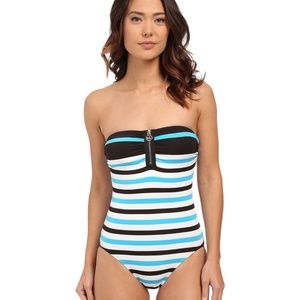 Michael Kors Striped Zip Front One Piece Swimsuit